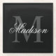 Create Your Custom Name Monogram Calligraphy Black Glass Coaster
