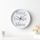 Create your own wooden-framed clock. Add your own image or text to the clock and customize it to match the theme of your room.