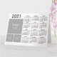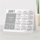Customizable folded greeting card with 2020 calendar template and place for three square images