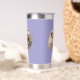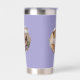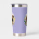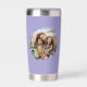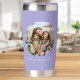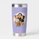 Create your own custom photo insulated tumbler in purple color. This tumbler cup features two of your favorite pictures in a circle shaped watercolor brush stroke frame and personalized text for any occasion. A great gift for family and friends or your own photo memory keepsake.