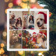 Create your own custom photo collage Christmas ornament featuring 4 of your favorite picture memories. Reverse side featuring Merry Christmas or custom text in minimalist calligraphy alongside name and year.