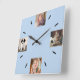 Create Your Own 4 Photo Modern Light Blue Square Wall Clock