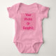 I love this onesie, it's adorable! The material is amazing so soft and the color is a perfect sky blue. When my daughter-in asked me to help with her Baby Shower, I was thrilled. It was co-ed & the theme was Cookie Monster. I had no idea that the whole world was after that big blue Monster. Thank goodness for Zazzle, I got most of the party supplies here. Then I found this onesie! They made my customization so easy. The colors are awesome. I wrote the word "Loved" across the bottom of the Cookie Monster in red letters when I was putting it together. I saw the preview & liked it. But to see it in person, OH, it was fantastic, they do exceptional work! I am so glad that I found this onesie/bodysuit. The production time and shipping were exactly what I was told, which made it easy to plan the party. Packaging was nice as well. If you are looking at this product, look no further, I highly recommend it! I'm certain that I'll be back to "design" whatever my new Grandson "needs.". The printing on the onesie/bodysuit is crisp, and clean. With perfect colors that blend well with the blue background of the basic material. We are so happy with how it came out.