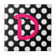 Bright pink letter D on white polka dots against a black background. You can change the background color and text color. You can also change the font style and letter ... or decrease the font size to personalize with a name rather than initials.