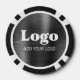 Create your own poker chips with your business logo. This double-sided design features a faux black metal background. Ideal for a casino night in your company, for promoting your business, or as a unique gift for your employees.