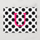 The monogram letter is customizable. You can delete the letter image and use the system to choose a bright pink color and your favorite font. If you like this shade, the code is FF0066. Bright pink letter U with a white and black polka dot pattern background.