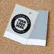 This modern "Your Logo Here" rubber stamp features a badge with custom logo, slogan and site.