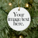 Lightweight, smooth, pure white ornament with nice sheen. Perfect size to be seen from across the room ... and to attract closer inspection! Price was great for ordering enough for the whole family! Clear, bold black design just as requested. Matches the order exactly. Just so nice!
