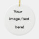 Lightweight, smooth, pure white ornament with nice sheen. Perfect size to be seen from across the room ... and to attract closer inspection! Price was great for ordering enough for the whole family! Clear, bold black design just as requested. Matches the order exactly. Just so nice!
