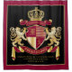 Create your very own aristocratic Coat of Arms, Emblem, Insignia or Family Crest with this beautiful, classic escutcheon or shield design. Crimson red patterns decorate a shield topped with golden crown and flanked by medieval heraldic lion or griffin. A matching top banner holds your custom wedding date / birth date / slogan or battle cry. The shield has space for your monogram initials. Bottom banner carries your family name. There is also space below for your favorite quote, motto or message. Replace the sample text with your own for a personalized gift. A gender neutral design that will work for families, groups, couples or individuals. Makes a wonderful gift for Wedding, Anniversary, Birthday, Retirement, Promotion, Father’s Day, Bachelor Party, Wedding Shower, Graduation, International Heraldry Day, Medieval or Fantasy-themed parties and other special occasions.