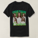 My 11 yo wore adult XL (5’7” 165#). The 8yo is small framed. She wore adult small and tied it in the back. Grandma wore adult large with long sleeve shirt underneath. Tall girl adult medium. Dark haired male adult large. Good quality dark Heather gray, Gildan brand shirt. -it was next up from basic choice and cost about $20 per shirt. Not too thick or thin. Washed and dried well, no major shrinkage. Not see-through. Can wear a bra under it fine. Screen print is just as shown and well done, front and back.