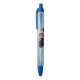 Very nice blue, or black ink pen. I will be buying more. The print was fine. I can easily see the print. The flowers look great.