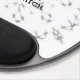 The plastic backing is nice and sturdy. The grippy pads underneath keep the mouse pad where I put it on my table. The pad the mouse sits on is cut well to fit the backing. The wrist pad is perfectly soft, supportive, and thick. I'm left-handed, and this mouse pad works just as well for me as it does for my right-handed friends. I'm the designer of HippieClecticHope products. I'm blown away by how well my intricate fractals turn out on the tangible items in the Zazzle Marketplace. This particular mouse pad ***appears*** like a 3D object... A mathematically-engineered rainbow black opal, inlaid under transparent fabric...