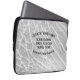 The sleeve is made of nice feeling material and seems very durable. I'm not sure how easy it'll be to clean, but the construction seems sound and the fabric is quick thick. I also like the double zipper. The printing is lovely and appears durable. The white on black contrast is nice, and the design very elegant.