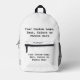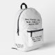 Create Your Own Custom Personalized Backpack. Add Text, photos, colors, images or logo for your own unique backpack for "back to school" adventure, hiking trip, vacation or any other event or everyday casual use backpack. Use colors images provided in customization panel or use your own photos/images text for free to customize. Custom Backpack, personalized backpack all-over-print design backpacks for you.