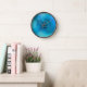 The size of the clock is dramatic and the abstract alcohol ink design is soothing and intricate at the same time. I chose the black frame that adds pop to the blue and gold design. The gold printing would be better in a slightly darker or larger font. I love it and I’m looking for just the right place in ny new apartment. I would recommend this clock for a personal gift or a present. I feel that the quality is excellent for the money! I’m a bit of a clock nut so I’m pretty particular about my purchases. The clock is larger in diameter than many if the clocks I have, so it stands out very well. I think a slightly darker printing color and a moderately larger size would best suit a professional decor or add more impact in a work place item.