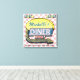 Create your own custom, 1950's style diner sign wall canvas using this easy template. These cool retro canvases have a slightly distressed pink-and-white checkered background with a sign on top that says "DINER" and "OPEN" in neon with space for you to add your own first or last name - or any other word you'd like. The sign also has a lighted arrow graphic and space for you to add a slogan and the year your diner, home kitchen or 50s theme bar was established.