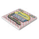 Create your own custom, 1950's style diner sign stone kitchen trivet using this easy template. This cool retro design has a slightly distressed pink-and-white checkered background with a sign on top that says "DINER" and "OPEN" in neon with space for you to add your own first or last name - or any other word you'd like. The sign also has a graphic of a lighted arrow and space for you to add a slogan and the year your diner, home kitchen or 50s theme bar was established. It's all done in shades of pink, white, black, blue, yellow, gray and red. Just fill in the easy DIY template or "Customize It" to resize, rearrange or change text colors & fonts.