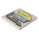 Create your own custom, 1950's style diner sign stone kitchen trivet using this easy template. This cool retro design has a slightly distressed pink-and-white checkered background with a sign on top that says "DINER" and "OPEN" in neon with space for you to add your own first or last name - or any other word you'd like. The sign also has a graphic of a lighted arrow. It's all done in shades of pink, white, black, blue, yellow, gray and red. Just fill in the easy DIY template or "Customize It" to resize text or change font. This trivet will look great in your diner-themed home kitchen or 50s theme bar.