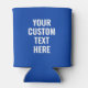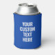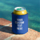 Create your own custom can cooler with your personalized text in blue and white color modern typography.