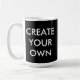 Create your own LARGE 15oz CLASSIC WHITE MUG (with example of BLACK BACKGROUND) from a fully customizable personalized blank template - for coffee, hot chocolate, tea - dishwasher and microwave safe, with color options on Combo and Ringer mugs: Black, Green, Brown, Navy, Light Blue, Pink, Orange, Yellow, Lime - for photo, image, logo, graphics, text, or your own customized design creation. Create, design and make your own Christmas or birthday gifts, wedding favor, or promotional business product from a fully customisable, personalised custom printed official Zazzle design template. THESE QUALITY MUGS ARE A BULK BUY MULTI-BUY DISCOUNT PRODUCT - buy more and save with regular huge sale savings too! CUSTOM MUG STANDARD DISCOUNTS ARE: 25 mugs = Save $1.00 each. 50 mugs = Save $2.00 each. 100 mugs = Save $3.00 each. 250 mugs = Save $4.00 each. The best quality product and print, range of mugs (giant, classic, white, large, color ringer & combo, magic, espresso cups ...), and top discounts, make this perhaps the best store to buy promotion mugs or mug gifts anywhere online.