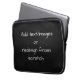 The sleeve is made of nice feeling material and seems very durable. I'm not sure how easy it'll be to clean, but the construction seems sound and the fabric is quick thick. I also like the double zipper. The printing is lovely and appears durable. The white on black contrast is nice, and the design very elegant.