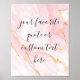 Create your own custom quote poster wall art. Simple to personalize with your favorite motivational saying or inspirational quote in elegant script calligraphy on a blush pink marble watercolor background.