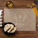 Custom classic traditional laurel monogrammed, family name, and established year elegant chic rustic country farmhouse style dark beige burlap white script template placemat. +++++++ A modern keepsake gift or table decor for weddings, anniversaries, housewarmings, Thanksgiving, Christmas, or any other occasion.