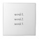 Use this black and white template to design your own personalized typography ceramic tile Tell your life story of positive affirmations, quotes, motivational, inspirational three words. Insert your own words / text in the spots on the right. You can go and customize fonts, colors, sizes by selecting CUSTOMIZE further option. Play with other fonts and colors, change background color or upload your own images, be creative and design your one of a kind inspirational or motivational own tile. It can be a unique accessory for you or a cool thoughtful gift for someone else.
