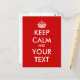 Fully customizable "Keep Calm and Carry On" postcard based on the British WWII poster! You can easily change the text by entering your own in the text fields, and pick your favorite color for the background! You can even add your own images or change out the existing crown image. Get creative and express yourself! :-)