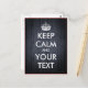 Fully customizable "Keep Calm and Carry On" postcard based on the British WWII poster on a dark aged wood background! You can easily change the text by entering your own in the text fields, etc. You can even add your own images or change out the existing crown image. Get creative and express yourself! :-)