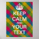 Create your own personal "Keep Calm and Carry On" poster! This is a colorful plaid version, with gold, blue, pink and red. Go ahead and fill your own text in the boxes provided, and feel free to customize as desired (background color, add images, etc). Great for teachers - make a custom poster for you classroom! Or create your own personal slogan for the office or just your desk. Have fun and enjoy!