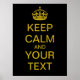 Create your own personal "Keep Calm and Carry On" poster! This version has antique brass / gold crown and text on a black background (customizable background color!). Go ahead and fill your own text in the boxes provided, and feel free to customize as desired. Great for teachers - make a custom poster for you classroom! Or create your own personal slogan for the office or just your desk. Have fun and enjoy!
