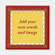 I have designed a magnet for you just add your own image by hitting the customized button and words to create your own personalized magnet. If just words just replace the existing words using the template. want to change the background red click on the customize button and pick a color. design by kaps images