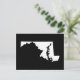 A simple blank modern minimalist design featuring the map shape of the state of Maryland in white against solid black.