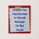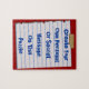 Make it yourself with this fun, custom puzzle template. Easily write your own text, cute photo, abstract design, pattern, a funny quote, or even an insult onto the taped paper note. Just click on "Customize it" and then add your own personal message and or photograph. When they finally put the whole puzzle together they will get your message! Great idea for Valentines Day, or "Will You Marry Me?" Great personal gifts for family, like mom or dad, teacher, and friends, girlfriend, boyfriend, etc. Shown are colors of red background and blue text which can easily be changed to any colors to further customize. What's your message going to be?