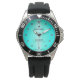 Create your own monogrammed green typography men's water resistance watch. Edit options are available.