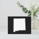 A simple blank modern minimalist design featuring the map shape of the state of New Mexico in white against solid black.