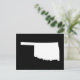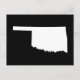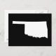 A simple blank modern minimalist design featuring the map shape of the state of Oklahoma in white against solid black.