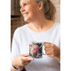 It is a lovely mug. The actual mug is shiny and smooth. Very nice quality. It was everything I expected. Zazzle has so many nice mid century modern designs to choose from. All so pretty! The design was very clear and looked expensive.