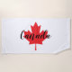 Calligraphy script text design. Typography beach towel at the lake. Create your own personalized Canada or Canadian souvenir gift with a maple leaf design.
