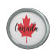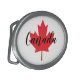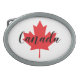 Calligraphy script text design. Typography oval belt buckle. Create your own personalized Canada or Canadian souvenir gift with a maple leaf design.