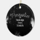 Lightweight, smooth, pure white ornament with nice sheen. Perfect size to be seen from across the room ... and to attract closer inspection! Price was great for ordering enough for the whole family! Clear, bold black design just as requested. Matches the order exactly. Just so nice!