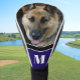 This custom dog photo personalized golf head cover features an editable dog photo with a monogram for a golf gift. Personalize it with your monogram in the listing editor.