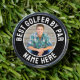 This custom combination divot tool features a detachable golf ball marker designed with a sleek black background and crisp white fonts for a bold, modern look. Your photo is printed on the marker, standing out beautifully against the dark backdrop. You can add custom text above, below, or on both sides of the image in clean white lettering, perfect for a name, funny phrase, date, or short message. Popular choices include sayings like Best Golfer By Par, Best Dad By Par, or any short text you prefer. If you’d like a more minimal style, you can leave the second line blank.
