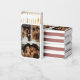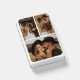 This matchbox design features a three-photo collage on the front, with two vertical photos at the top and a horizontal photo along the bottom for a modern, dynamic layout. It works beautifully for couples celebrating a wedding, engagement party, bridal shower, or anniversary—but can also feature individual photos for birthdays, bachelor parties, or other special events.