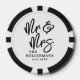 These custom poker chips feature a clean, all-white background on one side with all text in black for a classic and elegant look. “Mr. & Mrs.” appears in large black handwritten script, with the couple’s last name and wedding date placed directly below in a refined black serif font for a balanced finish. The other side can feature a favorite photo of your choice, keeping the design personal and memorable.