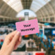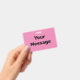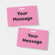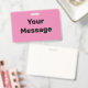 You can create your own message in black text on this pink badge.