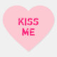 Customizable "Kiss Me" pink conversation heart shaped sticker. You can increase or decrease the text size to fit a couple's names and create a personalized Valentine's Day message.