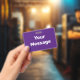 You can create your own message in white text on this royal purple badge.